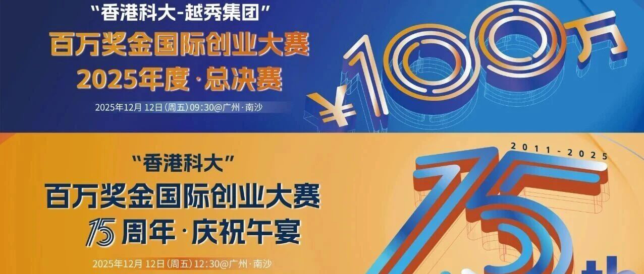 2025年12月12日,”香港科大-越秀集团”百万奖金国际创业大赛·2025年度总决赛&15周年庆祝午宴重磅启幕!历经 15 年沉淀,硬科技创业的 “黄金赛道”,从年度总决赛前10强巅峰对决到 15 周年庆祝午宴,两大重磅环节无缝衔接,邀您共赴科创年度盛事!