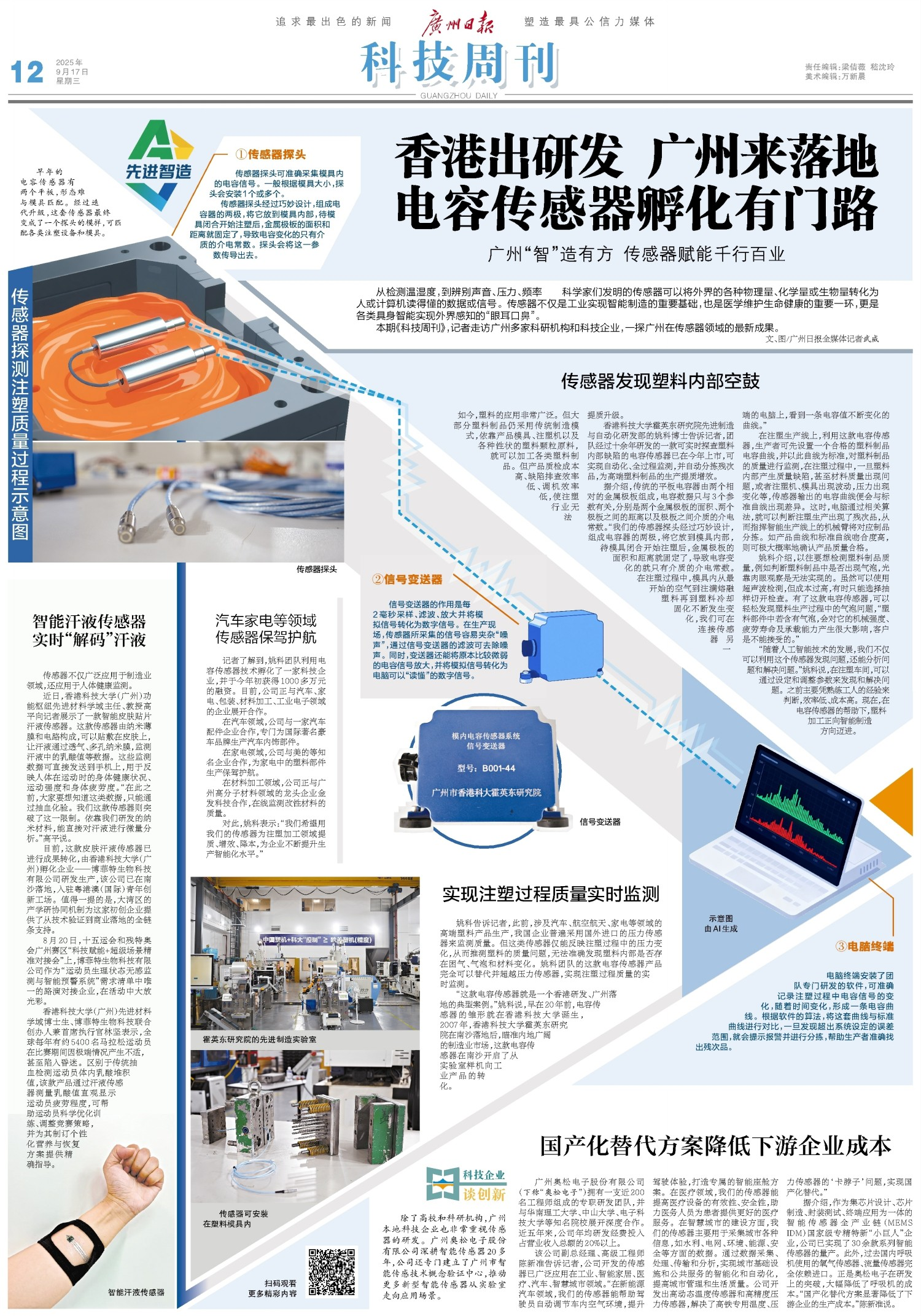 今日,广州日报第12版《科技周刊》栏目出版报道《香港出研发 广州来落地 电容传感器孵化有门路》,记者与我院先进制造与自动化研发部、创新工场入驻团队“博菲特生物科技”对话,一探广州在传感器领域的最新成果。